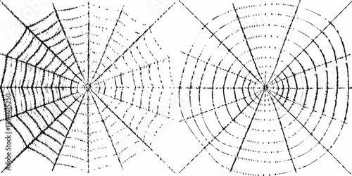 Obraz premium Two abstract black and white spiderwebs with a textured artistic and graphic design style
