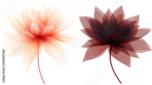 © GASTAN ALVARENDRA ST, Obraz premium Two abstract floral designs in peach and maroon tones.