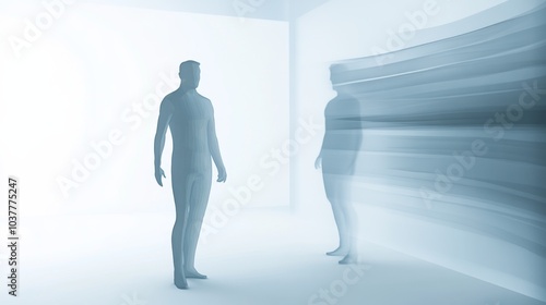 Obraz premium Two abstract human figures in a minimalist environment, representing concepts...