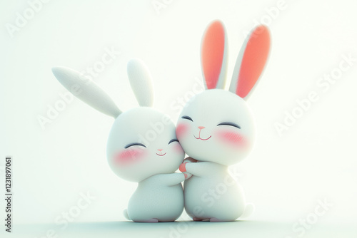 Fototapeta premium Two adorable bunnies embracing, cute and cuddly.