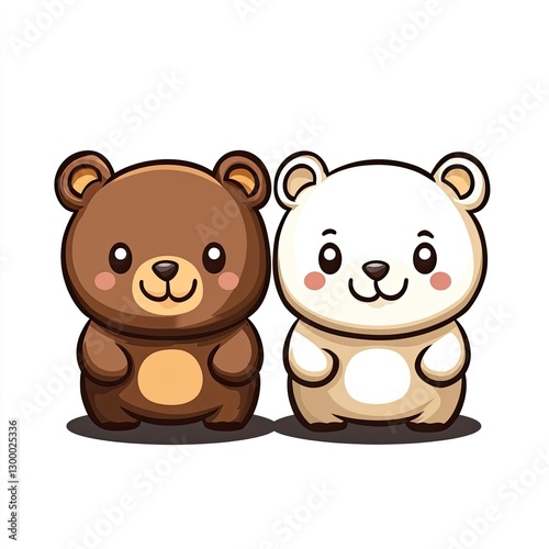 Obraz premium Two adorable cartoon bears looking cute and friendly together