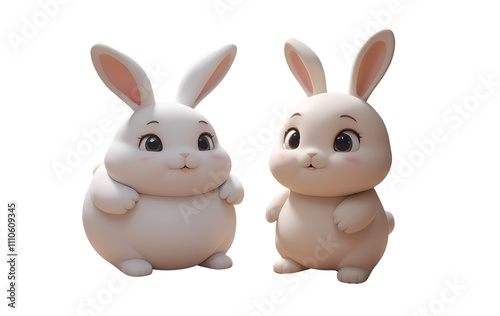 Obraz premium Two adorable cartoon bunnies, one white, one beige, standing side-by-side.