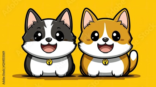 Obraz premium Two Adorable Cartoon Corgis Sitting Together