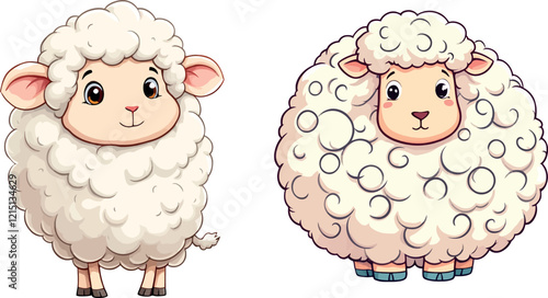 © frrlbt, Fototapeta premium Two adorable cartoon lambs showing different wool textures