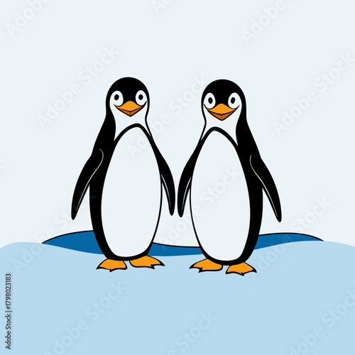 © AjuatHossainAbid, Naklejka premium Two adorable cartoon penguins standing together on ice
