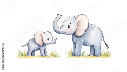 Naklejka premium Two adorable elephants, a parent and child, playfully interacting in a serene...