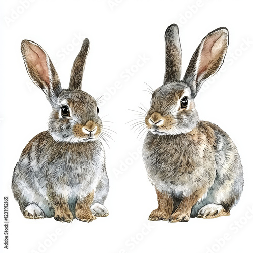 © watz, Fototapeta premium Two adorable grey rabbits, sitting side-by-side.
