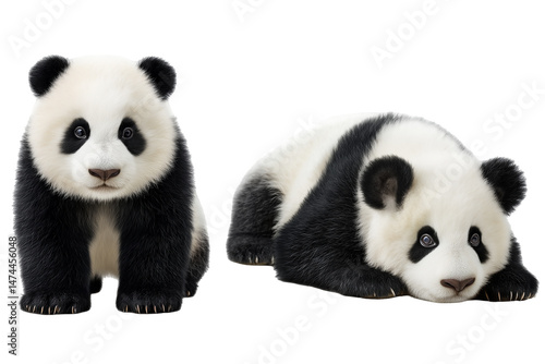 © Kainash, Fototapeta premium Two adorable panda bears, one sitting and one lying down