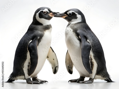 © Ripon Mia, Naklejka premium Two adorable penguins face each other, isolated on white background