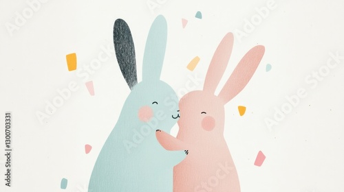 Obraz premium Two adorable rabbits embrace, surrounded by colorful confetti, r