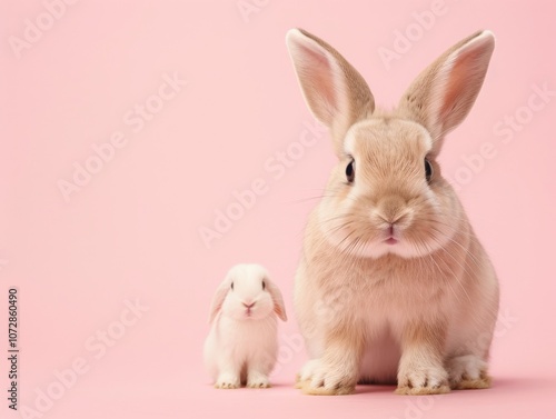 Obraz premium Two adorable rabbits on a pink backdrop.