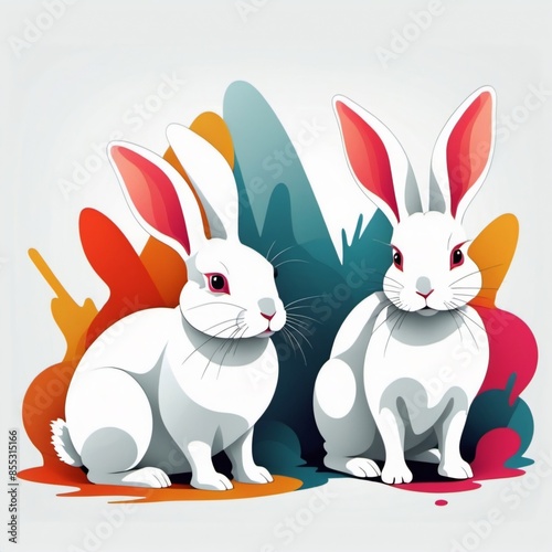 © HB, Fototapeta premium two adorable rabbits sitting side-by-side in a grassy field.