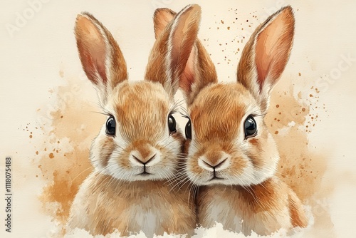 © Cilejug, Obraz premium Two adorable rabbits with soft fur and expressive eyes, set against a warm background.