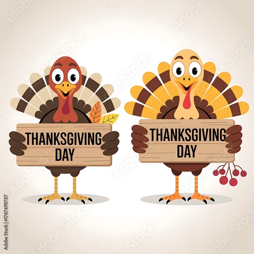 Obraz premium Two adorable turkeys celebrate thanksgiving day together