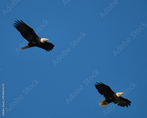 © feeferlump, Naklejka premium Two adult bald eagles flying high