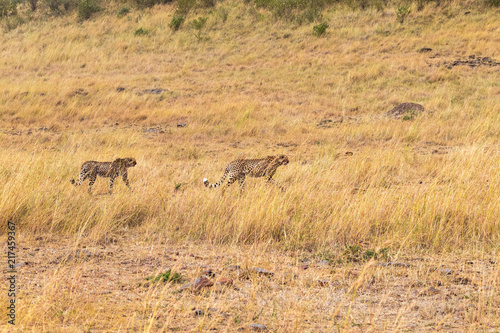 Fototapeta premium Two African cheetahs in search. Masai Mara. Kenya, Africa