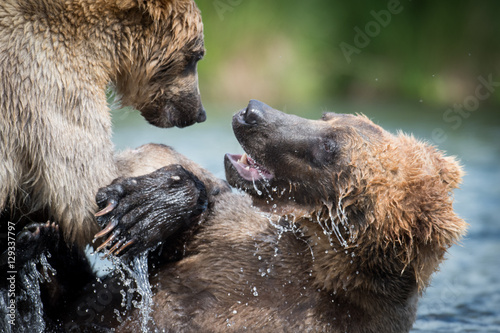 © Tony Campbell, Obraz premium Two Alaskan brown bears fighting