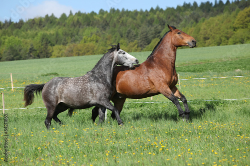 Fototapeta premium Two amazing horses playing in fresh grass