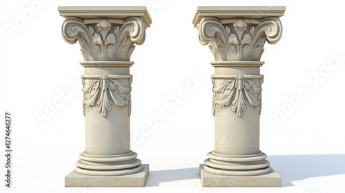 © Ashgan, Obraz premium two ancient greek or roman classical column made of stone isolated on white background