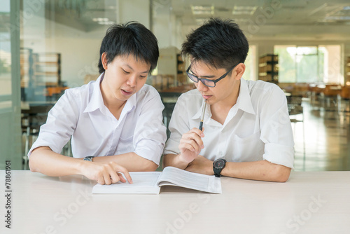 © Prasit Rodphan, Fototapeta premium Two Asian students studying together at university