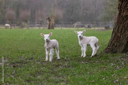 Obraz premium Two baby lambs on meadow