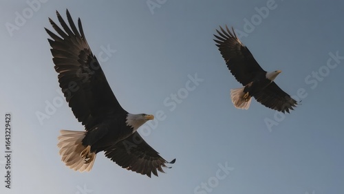 © GaoRui-Blithe2025, Obraz premium Two Bald Eagles Soaring in the Clear Sky