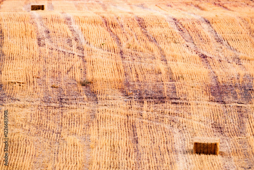 © Cavan, Naklejka premium Two Bales of straw in a stubble field in Carrizosa