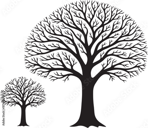 Obraz premium Two bare trees silhouette illustration