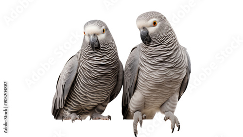 © ShivaniStudioss, Fototapeta premium Two beautiful African grey parrots. Wildlife photography clip out.