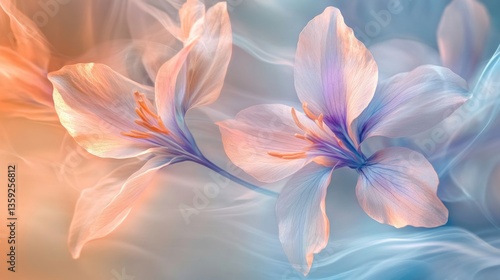 © Azahrul, Fototapeta premium Two beautiful flowers with delicate petals and ethereal backgrounds