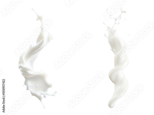 Fototapeta premium Two beautiful swirling milks. splashes and twisted milk on transparent background