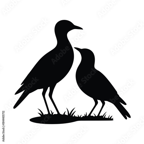 © Vector art Design, Obraz premium Two Birds Silhouette on Grass – Minimal Black Wildlife Nature Icon