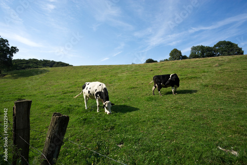 Fototapeta premium two black and white Holstein cows on a meadow