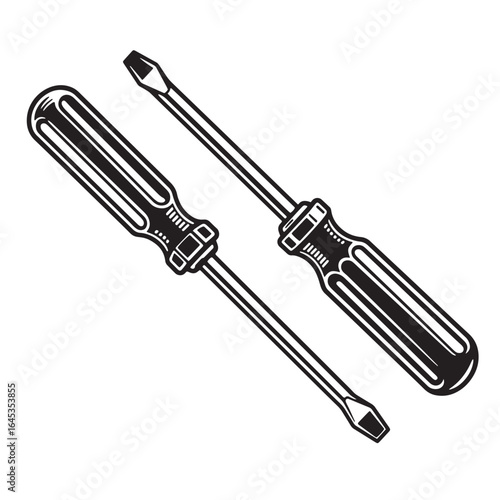 Naklejka premium Two black and white screwdrivers illustration on white background ready for construction or repair