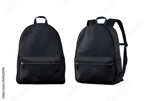© practice , Naklejka premium Two black backpacks with zippers on transparent background, PNG