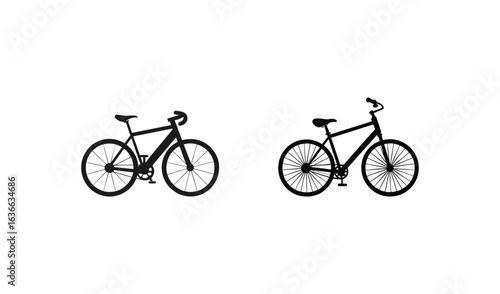 Obraz premium Two black bicycles side by side on a white background