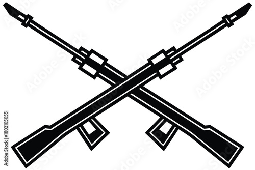 Obraz premium Two black detailed rifles are crossed, creating a striking military icon on...