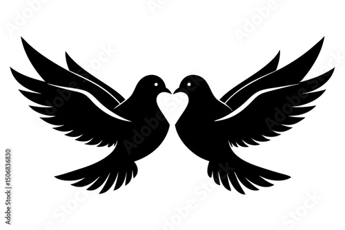 Fototapeta premium Two Black Doves in Love Silhouette