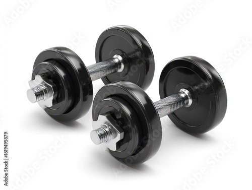 © Mind, Naklejka premium Two black dumbbells on white background (2)