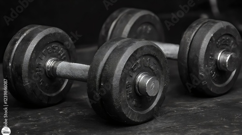 © Linus, Naklejka premium Two black dumbbells with a silver handle