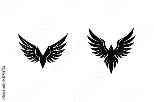 © kajallata, Obraz premium Two Black Eagle Wing Illustrations On White Background Concept For Logo