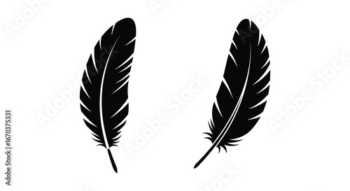 © Lhvect02, Obraz premium Two black feather silhouettes on a white background
