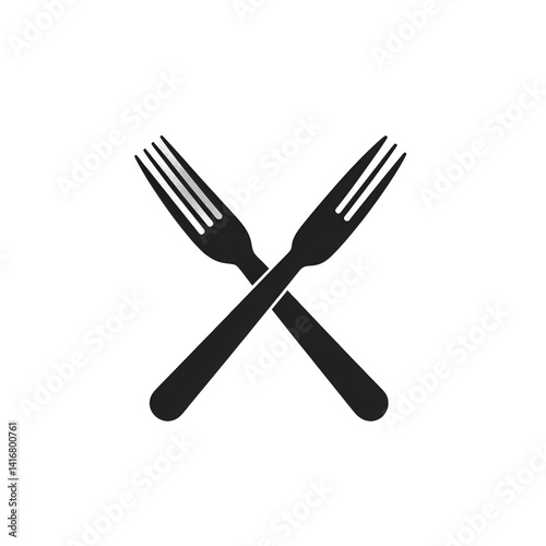 Fototapeta premium Two black forks crossed in a minimalist style, set against a plain background, emphasizing simplicity and elegance for dining or culinary use , isolated on white or transparent png