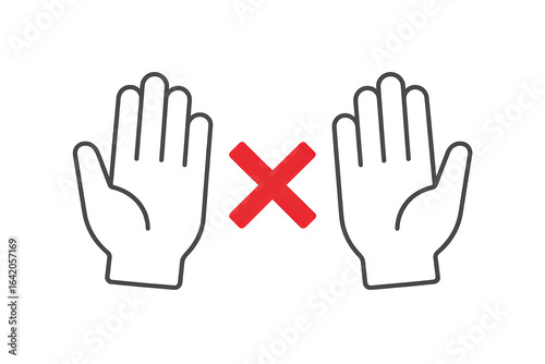 Fototapeta premium Two black outline hands with red cross between them, no touching, transparent background