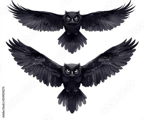Fototapeta premium Two Black Owls in Flight: A Stunning Illustration