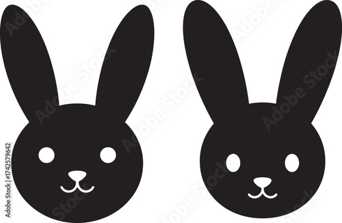 © Creative Icon Store , Fototapeta premium Two black rabbit head silhouettes with white eyes