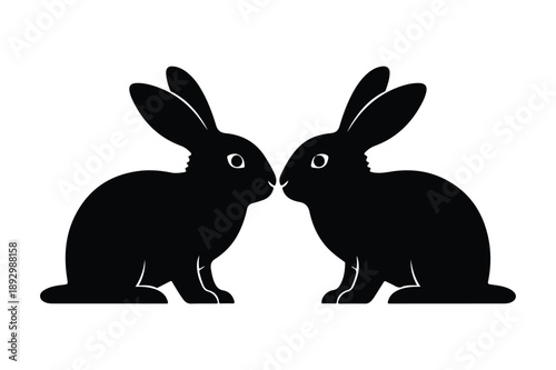 © Sadek, Fototapeta premium Two Black Rabbits Nuzzling Silhouette