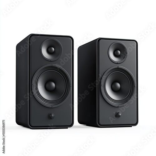 © Fadil, Fototapeta premium Two black, rectangular stereo speakers