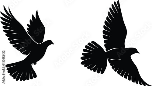 Obraz premium Two Black Silhouettes of Doves in Flight