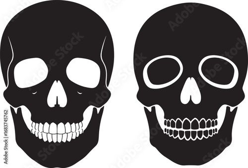Fototapeta premium Two black skull silhouettes facing forward isolated on white background